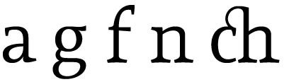 Asymmetric serifs both in their height and width, medium contrast